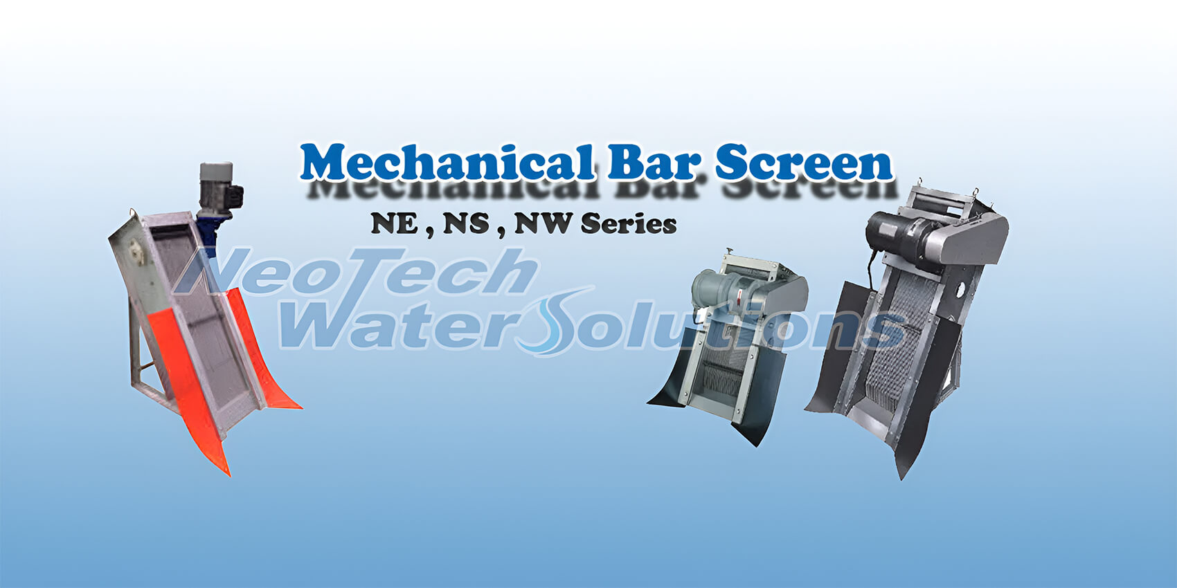 The NE/NS/NW-series is a front screen type automatic bar screen designed for screening wastewater. It is fully constructed from 304 stainless steel. Two or more rakes travel behind the screen bars located at the front side of the unit. Since every rake tooth moves between the screen bars, it can remove solid matters even though they lodge between the screen bars. In addition, the use of a small output motor enables to save the electricity. The bar screen is suitable for use in a waterway with varying water levels.