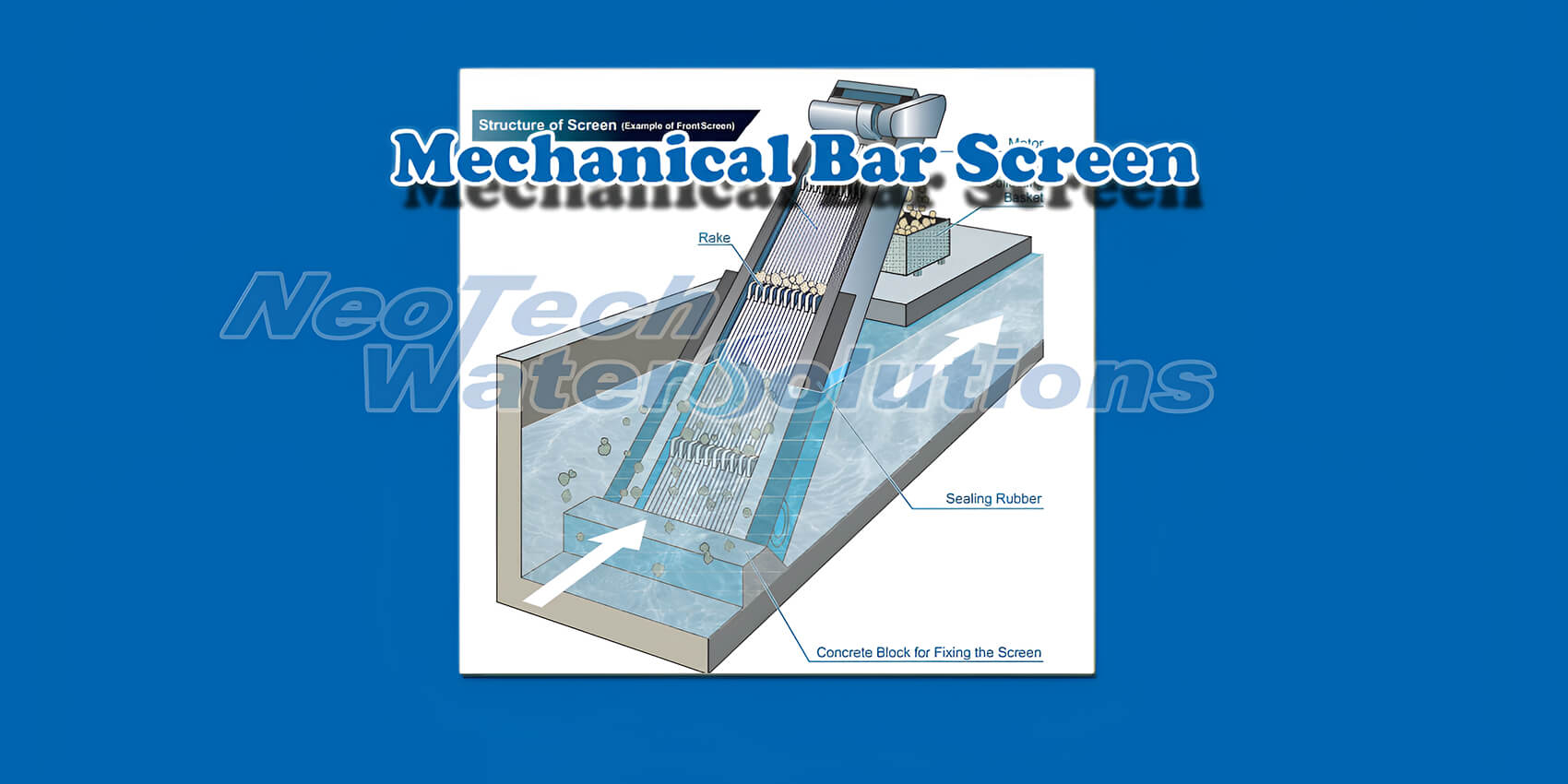 The Automatic Bar Screen is a mechanical equipment designed using high level of engineering skill to process running wastewater without any specific diversion or other chemical process. Automatic Mechanical Bar Screen is installed on the structure of canel / sream of wastewater i.e. discharged from processing plants, Automatic Mechanical Bar Screen collects solid / insoluble waste from waste water what does not pass through the spacing of the bar screen in continous operation and discharges collected waste into a insoluble waste bin.